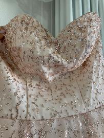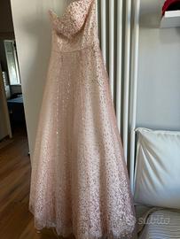 Vedo splendido abito da cerimonia color rosa antico arricchito da deliziosi brillantini. Taglia s-m. Indossato una sola volta.