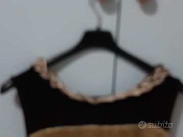 Abito da sera in stile anni 30,con frange e scollo rotondo con importante lavorazione (come una importante collana),con sottogonna.