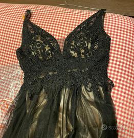 Abito lungo da sera con corpetto ricamato , gonna raso e tulle voluminosa indossato una sola volta per cena di gala. Tg 44