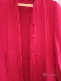 Per le prossime festività, propongo un elegante abito da sera lungo, di sartoria, in seta rossa.