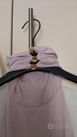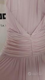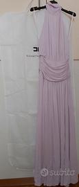 Abito da sera, nuovissimo, scollatura sulla schiena, spacco laterale, taglia 42, scollo all'americana con tre bottoncini dorati.