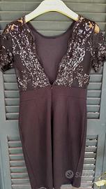 Abito da sera ricamato con paillettes. scollo trasparente sulla schiena. Misura della vita 38cm. Indossato solo 1 volta