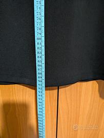 Abito da sera nero con maniche a tre quarti in velluto con fascia in pizzo. Prodotto Italiano