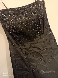 abito da sera nero , lungo con perline sul corpetto ,senza spalline . tulle nero nel sottogonna . tg 42/44