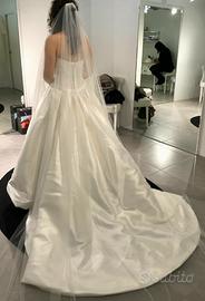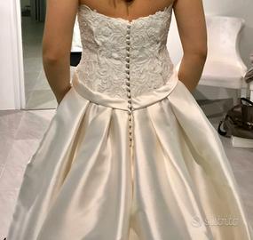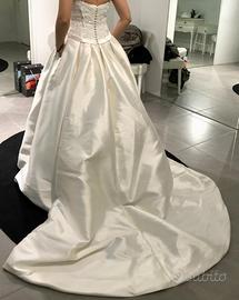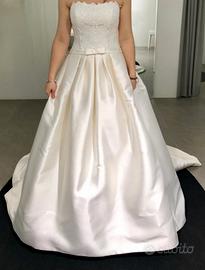 Vendo meraviglioso abito da sposa della collezione Rosa Clarà di Fausto Sari Atelier del 2018 . Usato una volta, tenuto in condizioni impeccabili, lavato professionalemente e tenuto con cura. L'abito veste taglia 42, stile mikado, corpetto ricamato. Stile principesco con strascico. Particolarità dell'abito nella gonna ci sono le tasche anche se non si vedono. prezzo 1200 , no perditempo.
