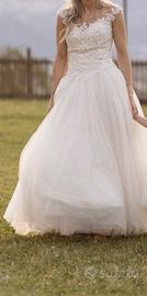 Vendo abito sposa tenuto in condizioni come nuovo completo di copri spalle e scarpe .. color bianco! Completo di scontrino.. prezzo come regalato!!