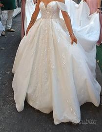 Vendo splendido abito da sposa a principessa, indossato una sola volta e in condizioni eccellenti. È un modello da sogno, perfetto per chi vuole brillare nel suo giorno più bello!