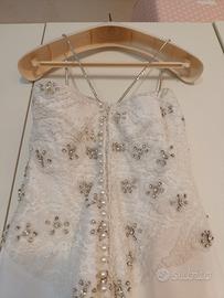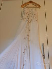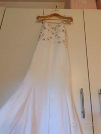 Vendo bellissimo abito da sposa a sirena con coda di due metri ..e Swarovski x tutta la lunghezza del vestito e sul corpetto ..taglia 40 ..corpetto rigido ..da portare a lavare xk impolverito ..400€ se volete Ke lo porto a lavare io il prezzo viene un po' di più ..