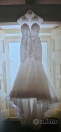 Vendo splendido abito da sposa della prestigiosa collezioneNicole by Alessandra Rinaudo Bridal Couture, modelloNIAB16113, celebre per essere stato presentato suReal Time. Un capo di alta sartoria italiana, raffinato e senza tempo, perfetto per chi cerca l’eleganza del pizzo francese e la struttura del mikado di seta. Dettagli dell'abito: • Modello Sirena con schiena effetto "nude" e dettagli in pizzo posizionati a mano. • Tessuto pregiato pizzo francese, tulle e seta mikado. • Taglia:44 (vestibilità reale 42, tipica degli abiti da sposa). • Misure di riferimento:Seno 95 cm | Vita 75 cm | Fianchi 95 cm. Tocco Esclusivo:Includomaniche tattoo realizzate su misura, completamente rimovibili. Permettono un cambio look immediato tra cerimonia e ricevimento. Come nuovo, indossato una sola volta e conservato nella sua custodia originale. L’abito non è ancora stato portato in lavanderia. Questo è un vantaggio, potrai gestirne la pulizia dopo le prove sartoriali di adattamento, risparmiando sul prezzo d'acquisto (prezzo di listino in atelier 4000). Disponibile anche ilvelo coordinato(prezzo da concordare separatamente). Prezzo richiesto per l'abito €1.750(Trattabili per chi conclude velocemente). Disponibile per visione o ritiro a mano. Resto a disposizione per inviare ulteriori foto dei dettagli o misure specifiche.