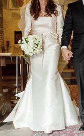 Vendo abito da sposa di Antonio Riva. Colore: rosa delicato (come da foto) Materiale: Mikado Taglia: 40 Compresa cintura, giacchetta e velo