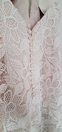 Abito Atelier Ame originale in pizzo di cotone bianco e stoffa interna color cipria. Taglia 40, accorciato per una persona alta 1.65 con tacco 8, coppe removibili. L'abito è già stato lavato ed è in perfette condizioni, non ha difetti.