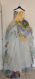 Abito da sposa modello Nanette Atelier Emé. Come nuovo, lavato subito dopo l'unico utilizzo. 100% organza di seta, taglia 42. Corto davanti e lungo dietro. Completo di custodia, cartellini e bozzetto del vestito. Il modello compare nel video Cieli Immensi di Patty Pravo.