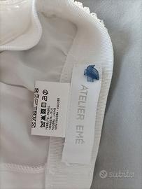 Abito da sposa combinabile Atelier Emé stagione 2024 taglia 42. Pagato tot 1.760€ come da ricevute allegate. Combinabile in quanto body e gonna sono separati, infatti la sera per i balli avevo fatto il cambio gonna con sneakers mantenendo però il body. Ovviamente tutto è modificabile e adattabile alle proprie esigenze e corporatura. Metterò in vendita anche la seconda gonna e le scarpe. Se interessate posso mandarvi anche altre foto soprattutto da indossato. Completo di sacca originale porta vestito. Abito completamente pulito spesi 80€ in lavasecco.