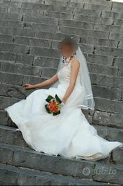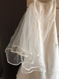 Taglia 44 indossato solo una volta.... 😂 X fortuna "le spose di cristina" No strappi o buchi La sposa è alta 182cm possibile quindi essere accorciato a piacimento Acquistato 3000euro presso Atelier Gigante di termini imerese Prezzo indicativo