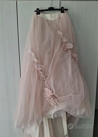 Vendo abito da sposa Atelier Hymen TG.42/44, rosa cipria. Corpetto con cristalli Swarosky, gonna con coda, con cristalli e rose applicate.