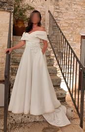 Abito Eva Lendel. Abito da sposa in mikado, elegante e raffinato. Indossato una volta e lavato in Lavanderia. Taglia Ucraina 46 ( corrisponde ad una taglia 44 italiana). Non ha bisogno di essere stretto perché dietro ha le stringhe che si possono stringere e adattare al proprio fisico. Per avere ulteriori foto, contattatemi in privato. Collezione primavera estate 2025. L'altezza della sposa in foto è di 1.75 e quel giorno indossava un tacco piuttosto basso, di circa 3 cm. Pagato 4.300.