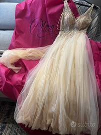 Abito di Claraspose, acquistato e indossato ovviamente solo il giorno delle nozze e lavato . In condizioni perfette come nuovo ,tg 42 colore champagne come da foto