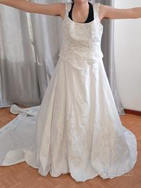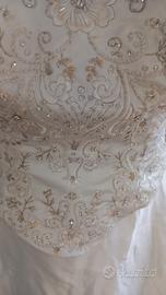 Abito da sposa bianco taglia L/XL con maniche staccabili,stola,velo e sottogonna con cerchio,coda bella lunga tutto decorato,possibile visionare