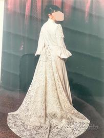 Abito da sposa vintage sartoriale taglia 44 beige con pizzo rebrode francese lunghissimo stascico. L’abito e nuovo con cartellino il suo prezzo era di € 3.800,00