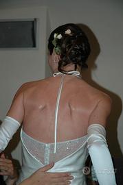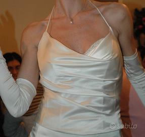Abito da sposa tg. 40-42, marca Valentini, in raso di seta con cristalli Swarovski sul corpetto
