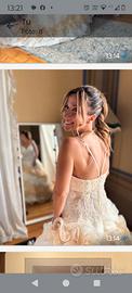 meraviglioso abito da sposa con corpetto prezioso e ampia gonna con strascico bicolore. Da portare in tintoria