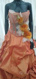 abito da sposa, nuovo con cartellino,colore arancio cangiante, taglia dalla 40 alla 46,2 pezzi corpetto e gonnellone