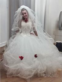 Comprende collarino con richiamo rosa, guanti tulle bianchi e velo con punti luce Swarovski.