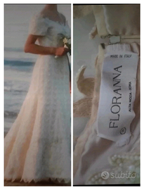 Meraviglioso abito di alta moda in una raffinata colorazione écru, in misto seta, della storica sartoria romana Floranna.