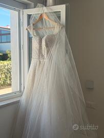 La gonna è ampia in soffice tulle leggero, perfetta per un effetto principesco e romantico. Compreso ti velo lungo 3 metri. Taglia 42 IT 163 cm per 60 kg