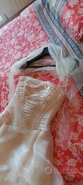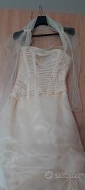 Vendo abito da sposa color cipria con coprispalle (divisibile) Tessuto superiore in organza Taglia 42 La sposa che lo ha indossato è alta 1.70 Prezzo originale 3.000 euro