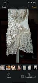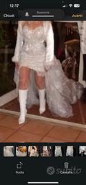 Vendo abito da sposa con Swarovski in perfette condizioni, usato solo una volta...compreso stivali fatti a mano in pelle taglia 37, collana Swarovski celli spose collezione gioiello. L'abito è composto da due parti, il corpetto che può essere utilizzato come miniabito e gonna sottocoda e coda staccabili. Per info contattatemi
