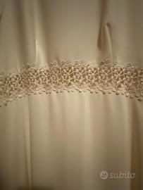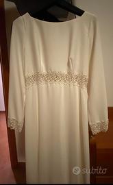 Abito stile impero con manica a 3/4 pizzo finale e in vita, piccola coda e bottoncini sulla schiena