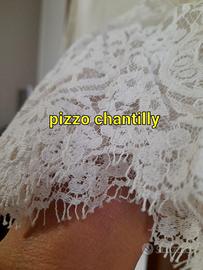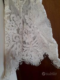 In vendita abito da sposa tg. 44, corpetto in pizzo morbido chantilly, sul retro abbottonatura con cerniera nascosta da bottoni ricoperti, colore crema, mai utilizzato. Consegna gratuita.