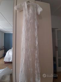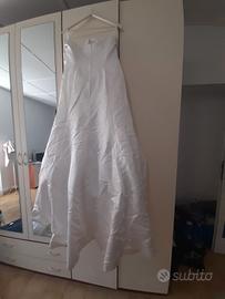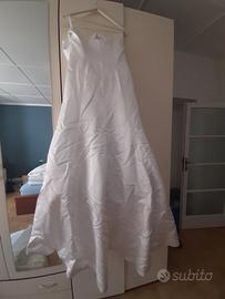 salve vendo Abito da sposa, in ottimissimo stato, 3 pezzi abito taglia M, tulle completo parte frontale, e coprispalla molto bello, L'abito e un sotto ascella..... con la coda non tanto lunga, di sartoria, possibilità di lavaggio e stiro da lavanderia professionale.. pagato 1600€, vendo a solo 300€ Trattabile... 3498332417 Massimo.
