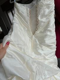Piccolo strascico. Leggero da indossare. Piccole macchie lasciate da precedente fiocco rosso applicato precedentemente.