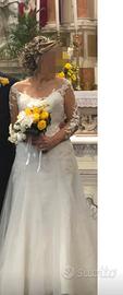Bellissimo abito da sposa, sirena con maniche e schiena pizzo e velo, TG 44, già pulito, usato solo 5 ore, matrimonio in covid 2021, con giubbino in pelliccia, e ombrello bianco stampa pizzo nuovo. Consegna a Trieste.