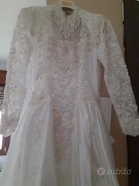 Elegante abito da sposa lungo, completo di velo.