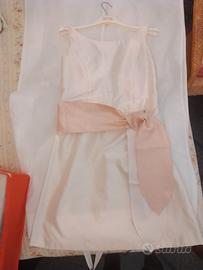 Abito da sposa in raso bianco tubino corto taglia L. con cintura in raso rosa
