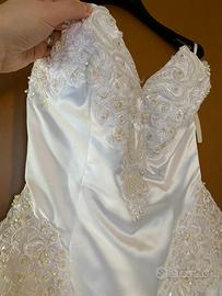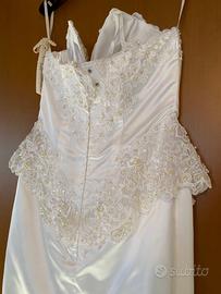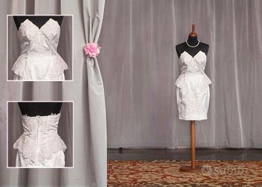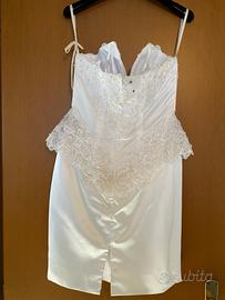 abito da sposa corto senza spalline in duchesse interamente decorato con pizzo e perline. abito mai indossato un perfette condizioni taglia 40-42 colore bianco, abito sartoriale