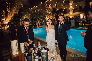 vendo abito da sposa effetto nude. Modello TYRA di Enzoani. Collezione 2025. Sirena in pizzo macramè con perline e motivi floreali, molto luminosa. In omaggio accessori capelli. taglia 42. Indossato pochissimo perchè scelto come cambio abito. Indossato con tacco 10 (sono alta 164 cm). Taglia 42. Si vende lavato. Per info e altre foto sono disponibile. Disponibile anche spedizione a carico acquirente.