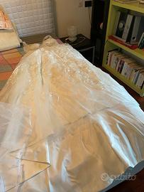 abito da sposa in pizzo leggero foderato e doppio tulle con leggero strascico con sottogonna a ruota con cerchio acquistato e mai indossato taglia 46-48 corpino aderente altezza donna 175