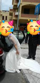 Completo di sottogonna, velo, guanti, coprispalle, cuscino per le fedi. Prezzo poco trattabile
