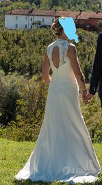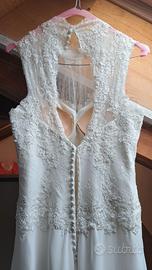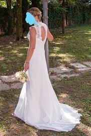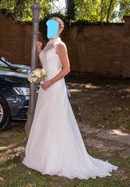 Vendo abito da sposa taglia 42, marca Marylise, modello Trapezio color Ivory. Abito con scollo americano, in tulle drappeggiato e pizzo. Bustino lungo in pizzo e gonna in chiffon, completo di sottogonna e coprispalle. € 700.Usato a Settembre 2024 poi lavato in lavanderia; in ottime condizioni.
