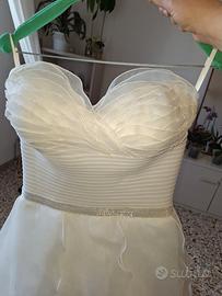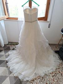 Splendido abito da sposa Pronovias, TG 44, usato solo una volta e in condizioni perfette senza macchie.Lavato subito e conservato nella custodia per abito. Completo di coprispalle del tessuto del vestito. Sotto ha tanto tulle per dare volume, coda a strascico non esagerata..regalo scarpe tg 37 .contattatemi pure se interessati a vederlo e provarlo! O se volete altre foto!
