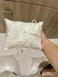 Insieme al vestito ci sono anche i guanti e il cuscinetto per le fedi.