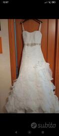 Vendo abito da sposa bianco Demetrios in organza, taglia 40-42. Regalo il velo e coprispalle in tulle. Lo stato dell'abito è come nuovo, lavato in lavanderia. Ho ancora anche il cartellino della griffe dell'abito.