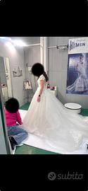 Vendo abito da sposa doppio,abito a sirena con gonna che si puo’ togliere..nuovo fatto su misura e mai usato..le misure sono nell ultima foto