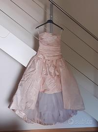 Elegante abito da sposa, da sera o da cerimonia di colore rosa chiaro in seta 100%.