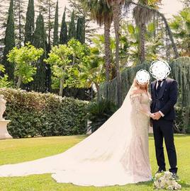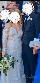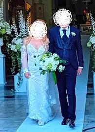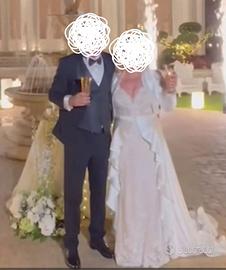 Vendo abito da sposa e da sposo, ANCHE SEPARATAMENTE. ABITO DONNA in pizzo rebrodè completo di velo e decori capelli, cambio sera con gonnellone e copri spalle in seta. Le maniche possono essere rimosse. Collezione 2025. Taglia 46/48. PREZZO ABITO DONNA: 2500,00€ ABITO UOMO con doppia camicia papillon. Collezione 2025. Taglia 46 PREZZO ABITO UOMO: 800,00€ Per ulteriori informazioni e foto non esitate a contattare in privato.