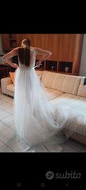 Vendo abito la sposa+sovragonna in tulle come da foto. Lavati. Abito accorciato per una persona alta circa 1.60cm. Per qualsiasi informazione scrivetemi!